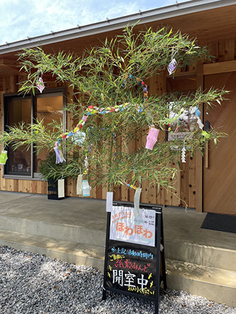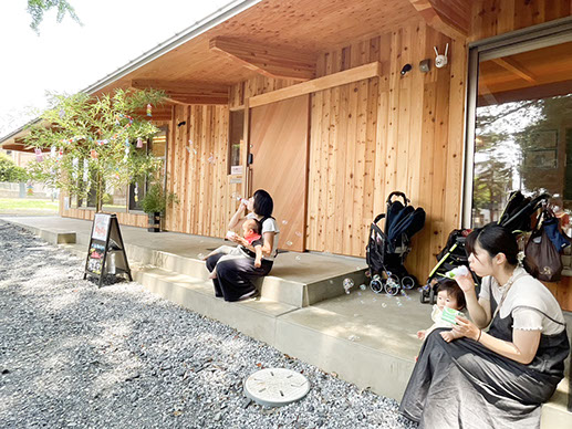 ほわほわが開催される、紙敷春日神社境内内にある「紙敷あんど」。木のぬくもりと緑に囲まれた心地よい空間です。