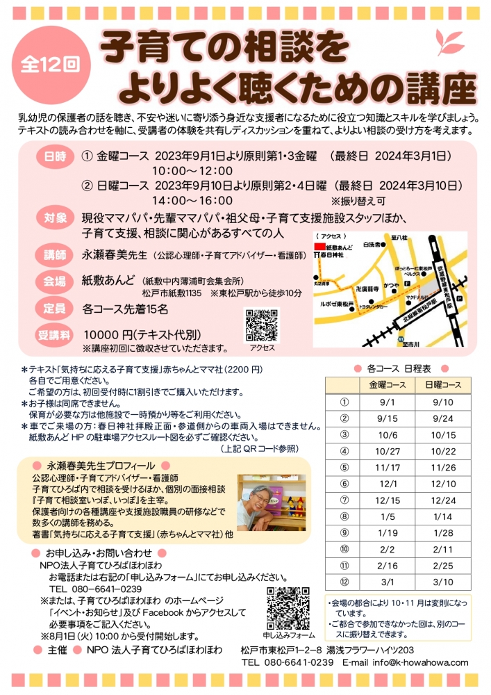 永瀬春美先生の『子育ての相談をよりよく聴くための講座』(全12回)